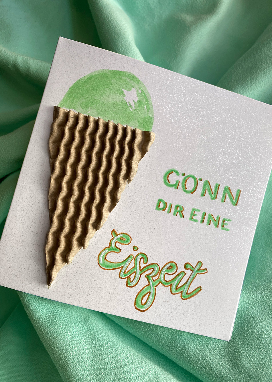Karte mit erhabener Waffel auf glitzerndem Grund