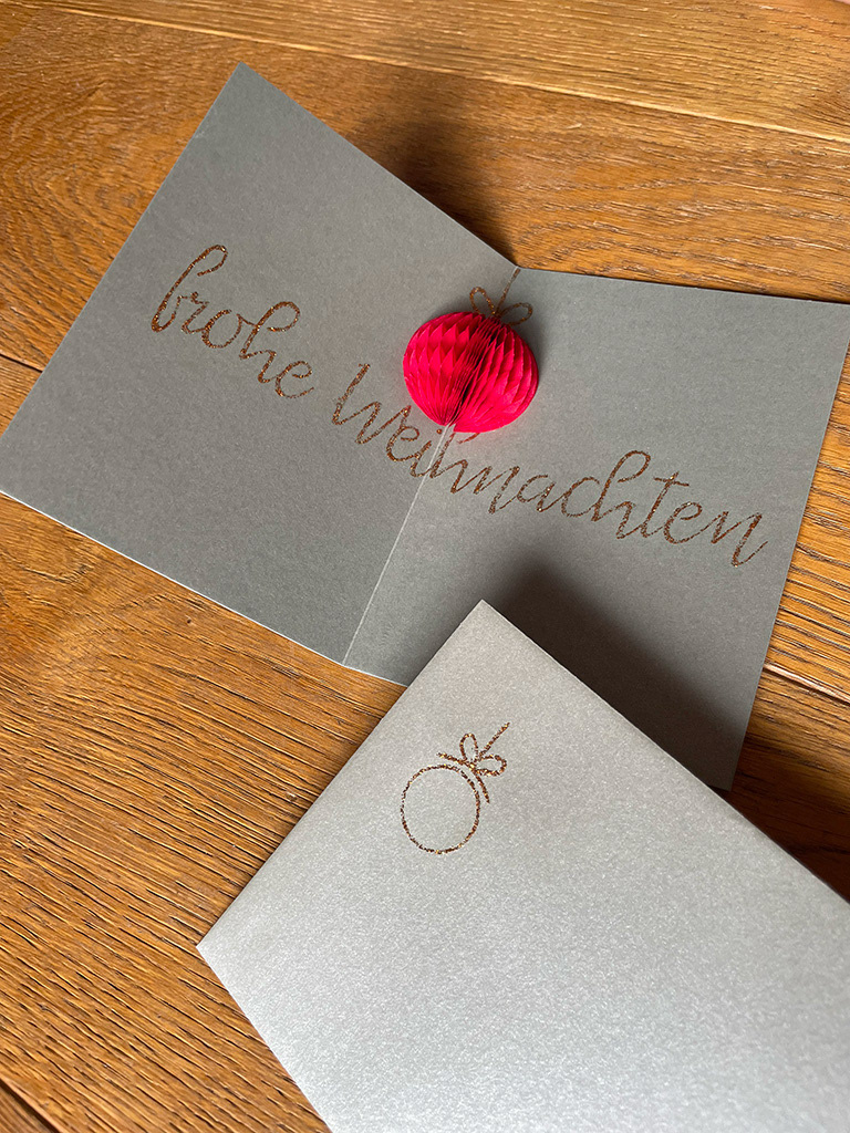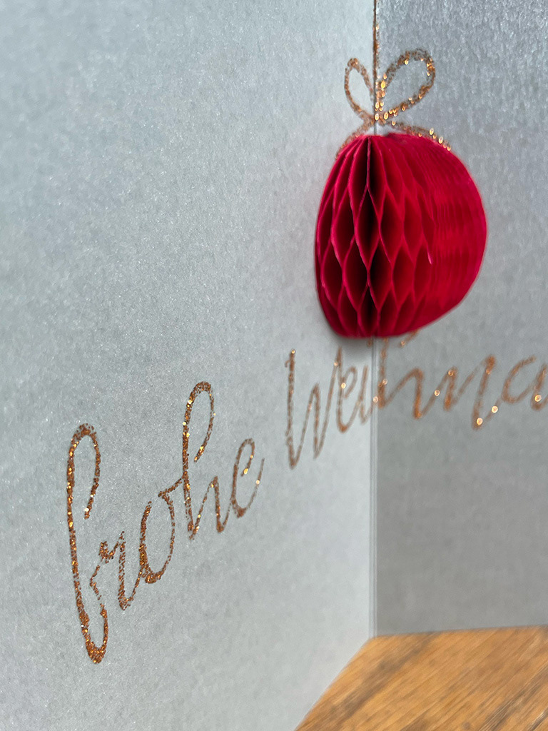 Schimmernder Karton, glänzender Schriftzug und eine Überraschung im Innern