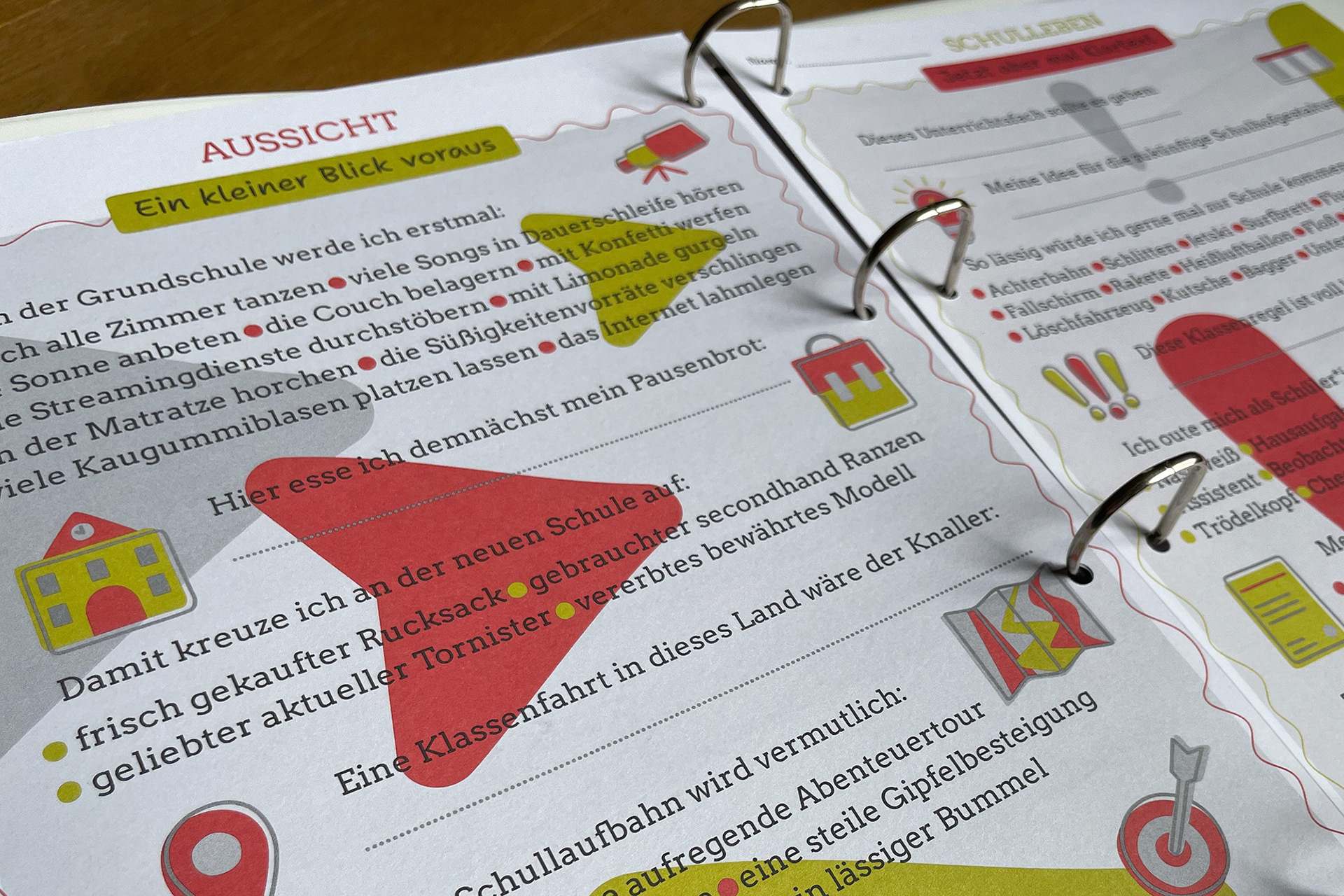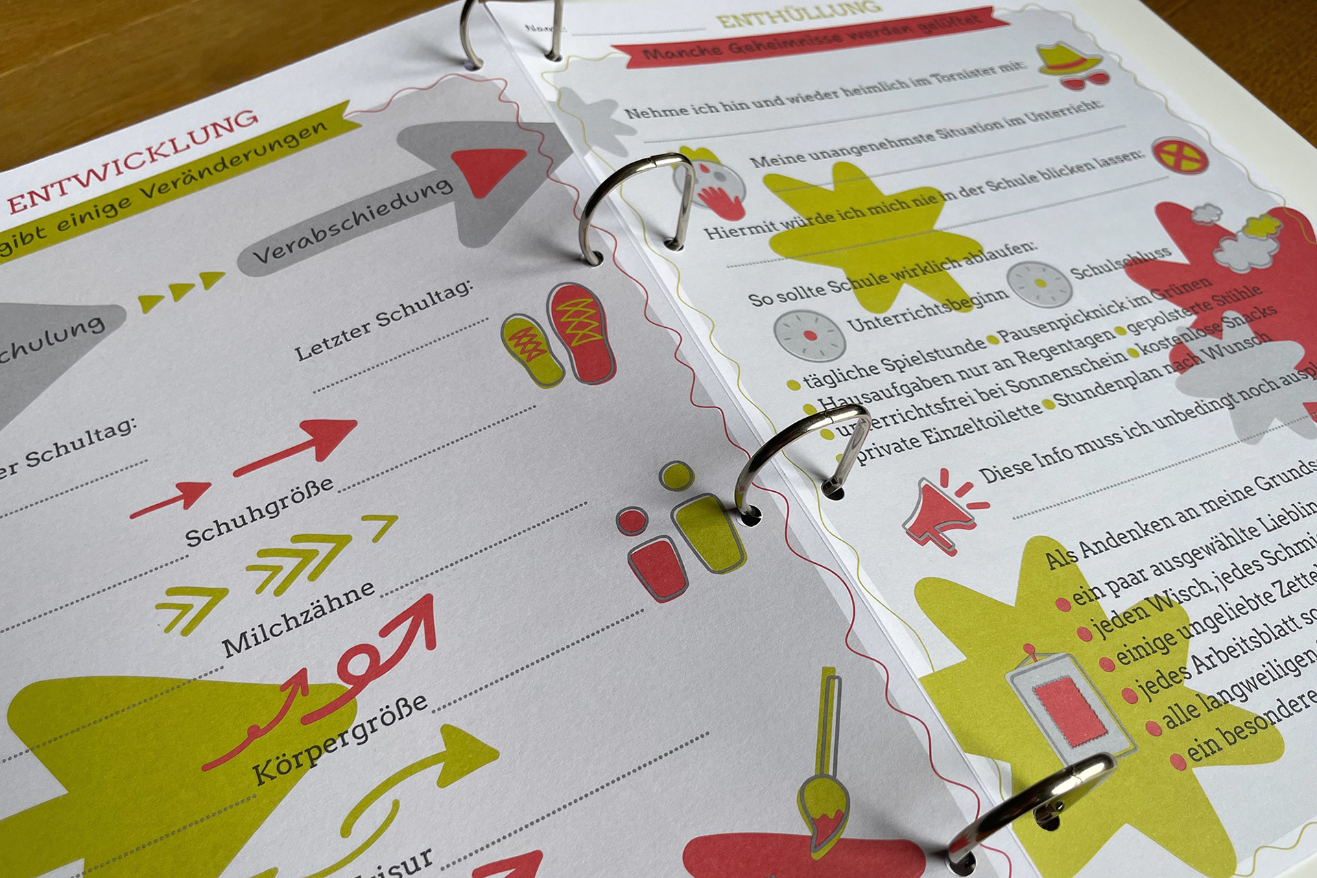 Erinnerungsalbum an die Grundschule mit Widmung, Abschiedsworten und Fragebögen
