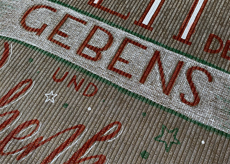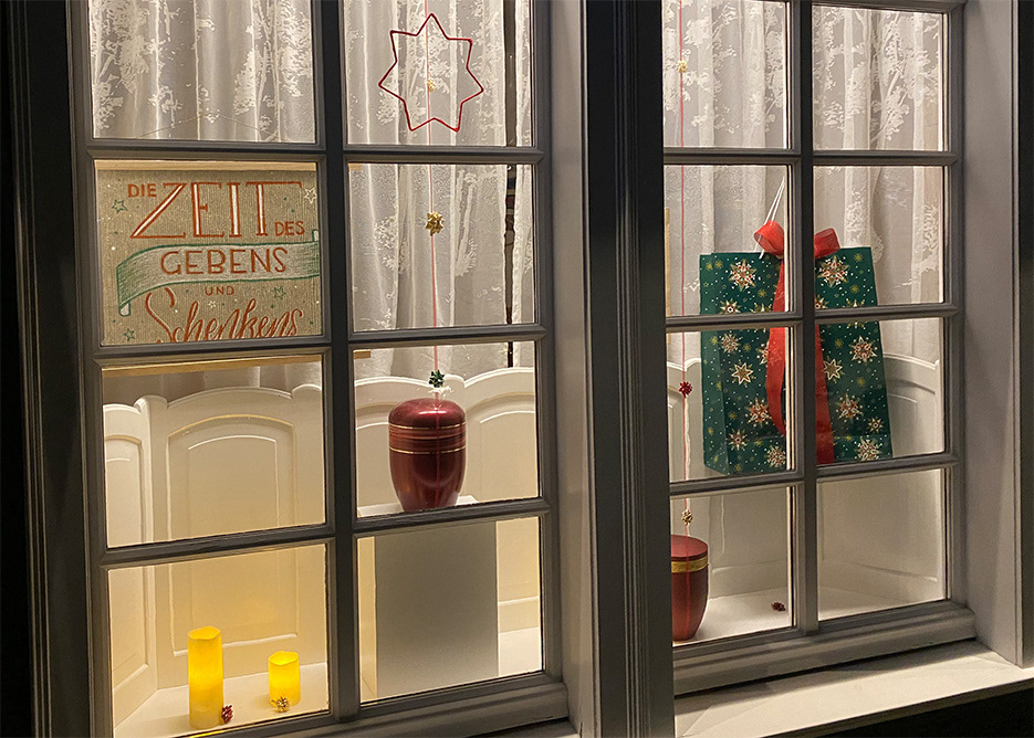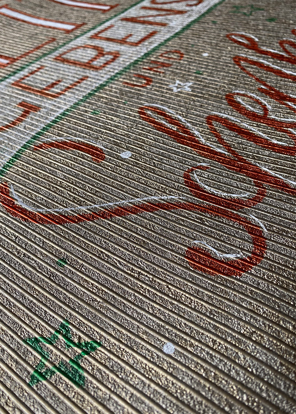 Lettering zum Weihnachts-Schaufenster auf goldener Struktur