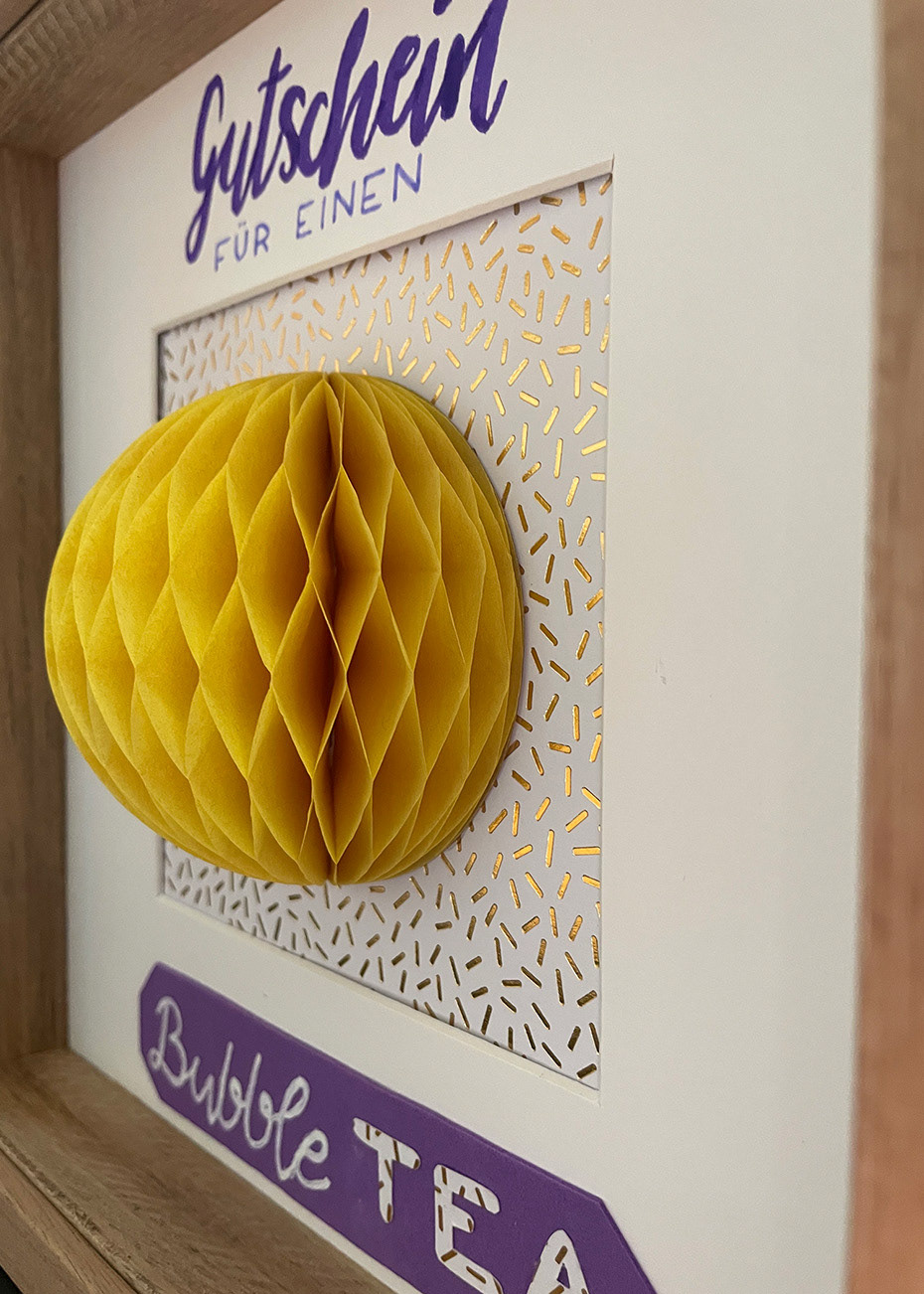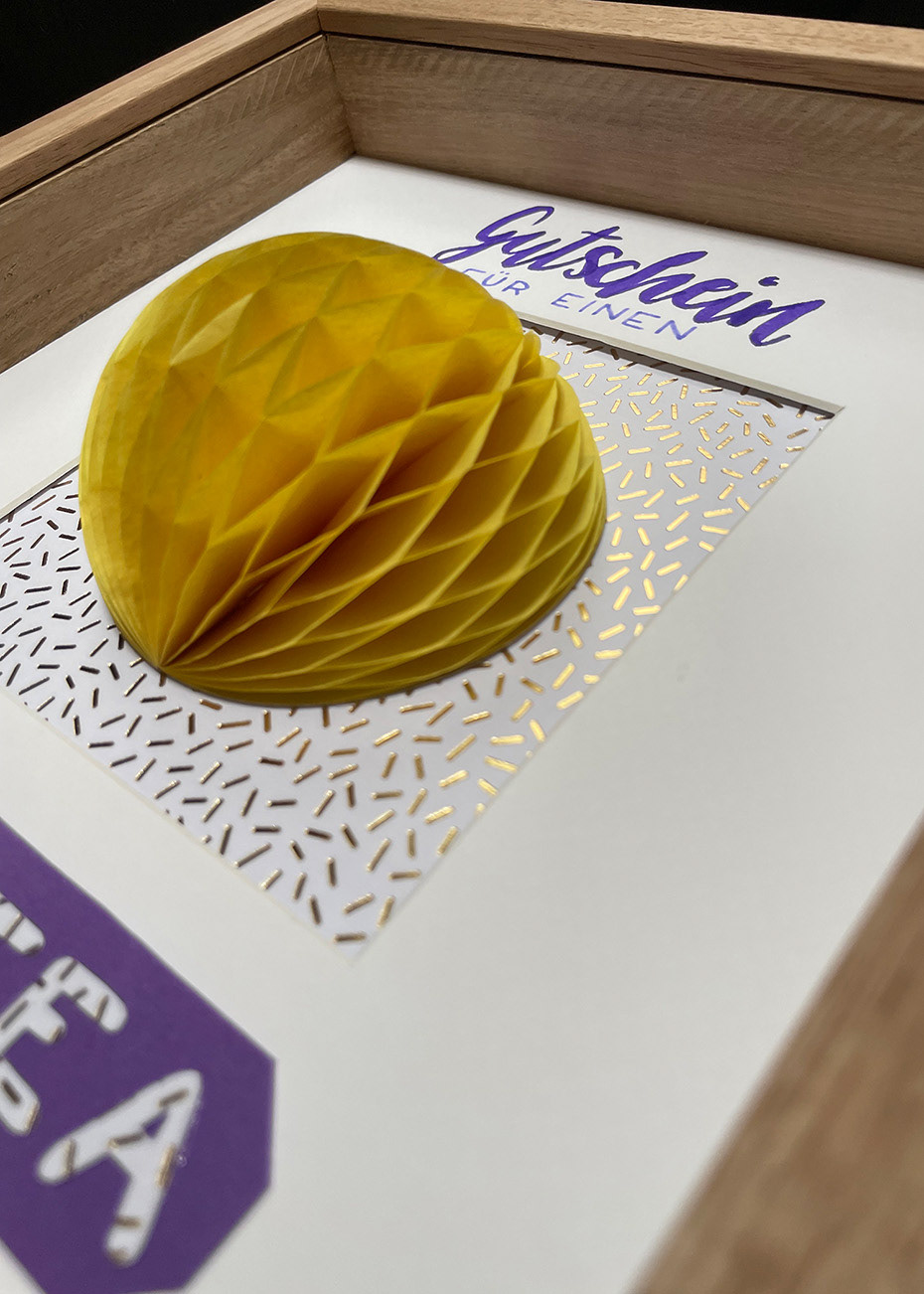 Gutschein im Rahmen mit Wabenball in 3D Optik