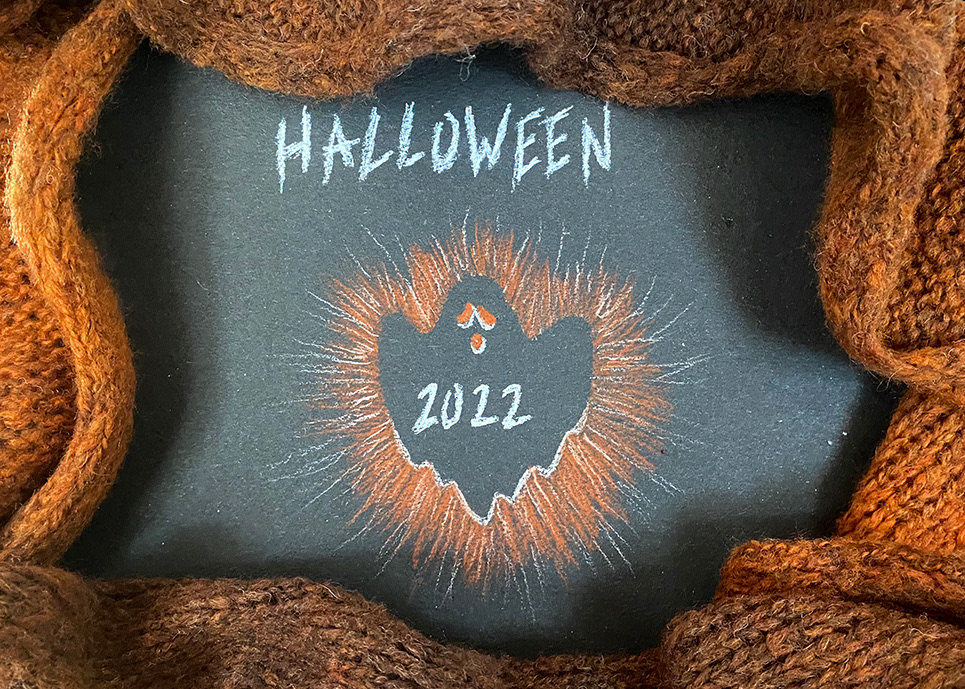 Motiv für Halloween mit Pastellstiften auf schwarzem Grund