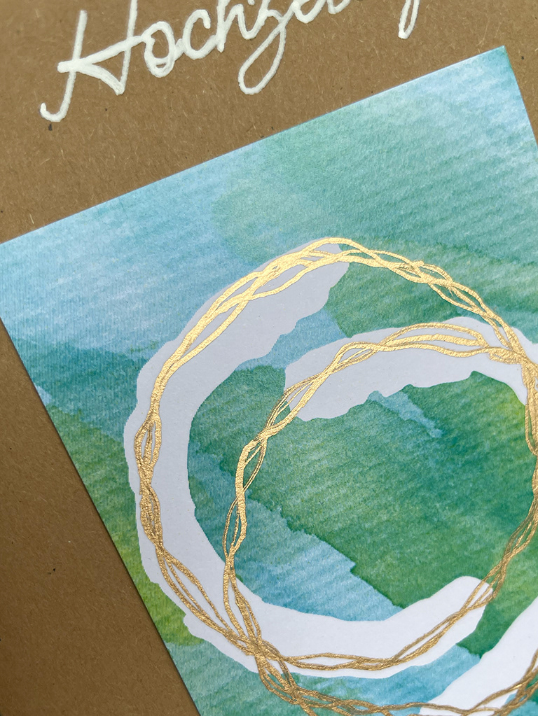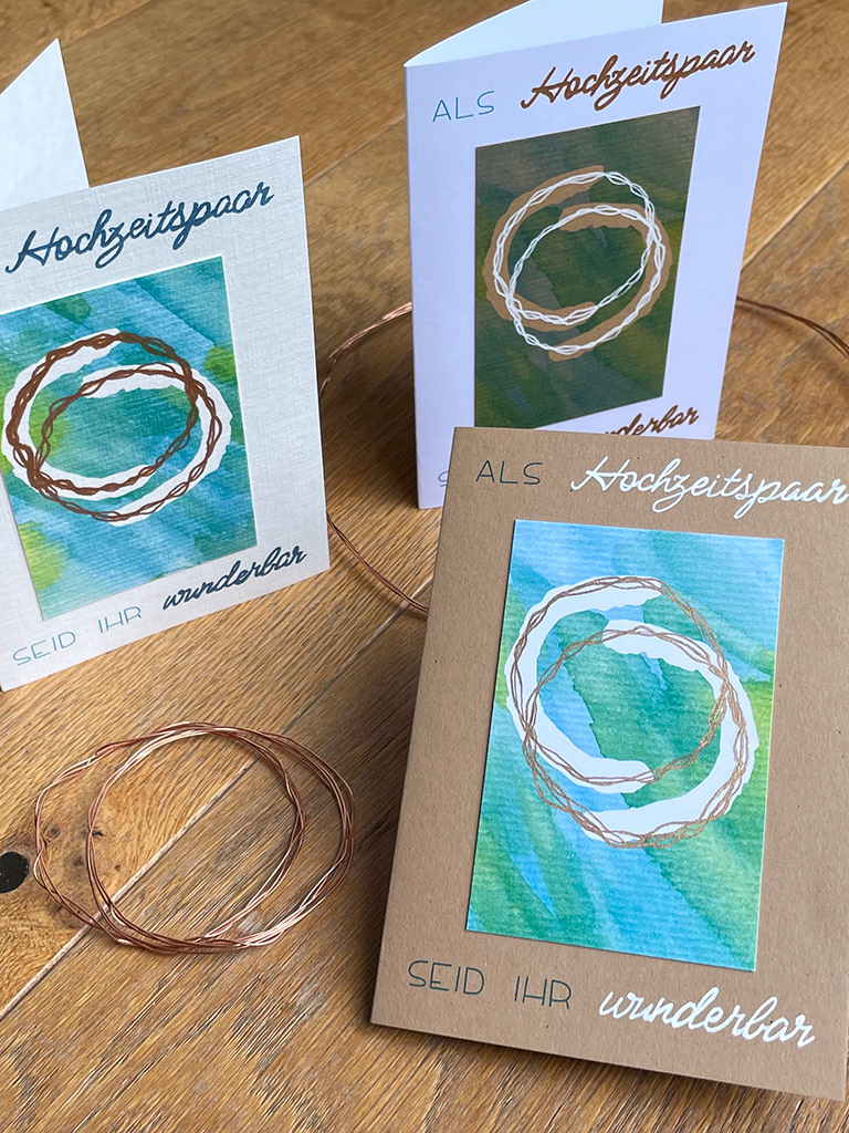Ringpaar vereint auf edlem Karton mit schimmernder Metalloptik