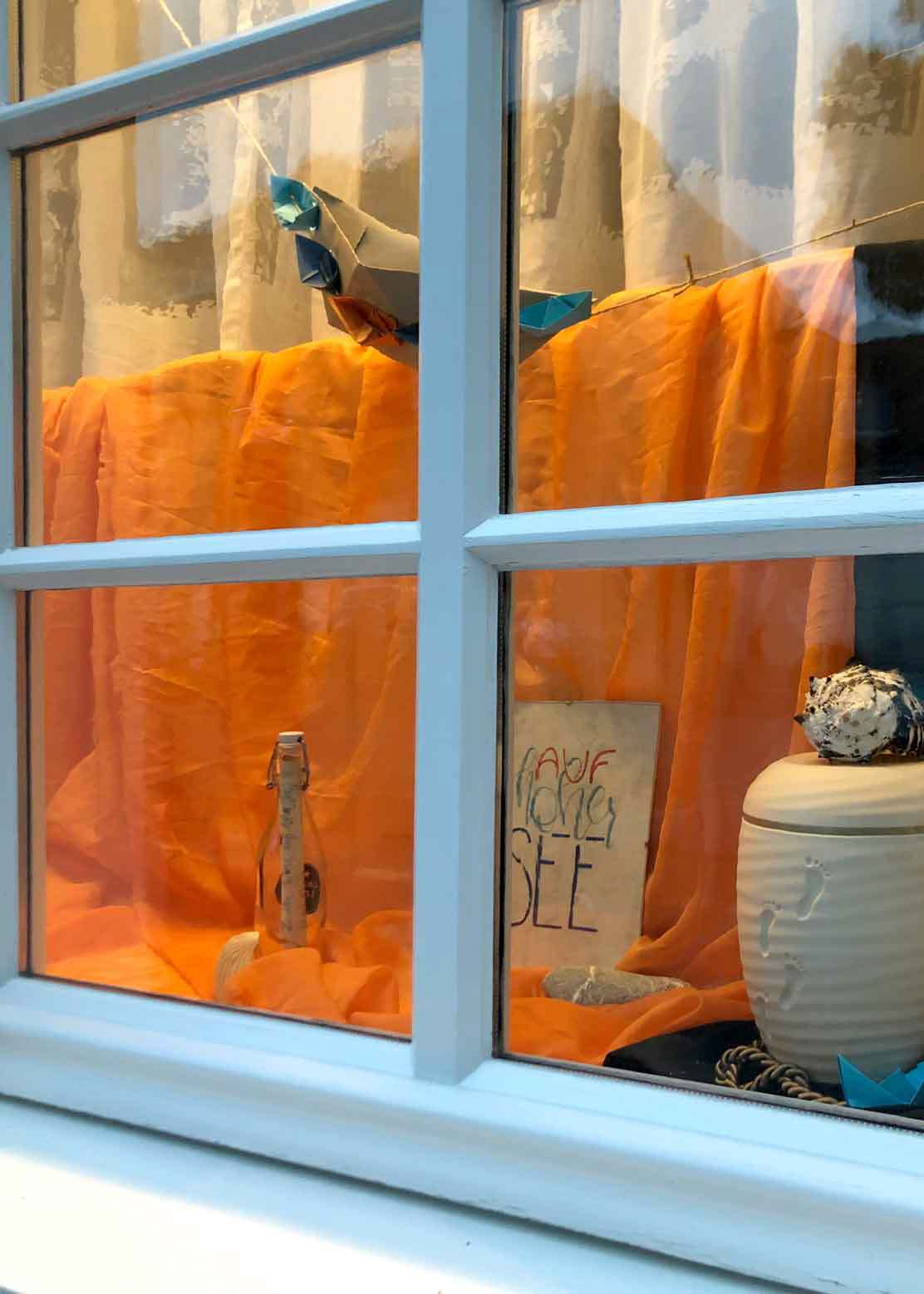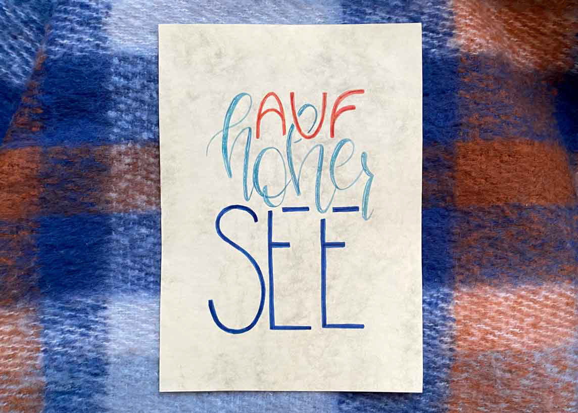 Handlettering zur Schaufenstergestaltung zum Thema Seebestattung