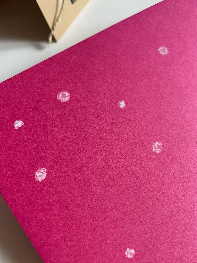 Mini-Präsent für dich – Magnetschild auf Kraftpapierkarte umrahmt von zarten Tupfern mit Folienschriftzug