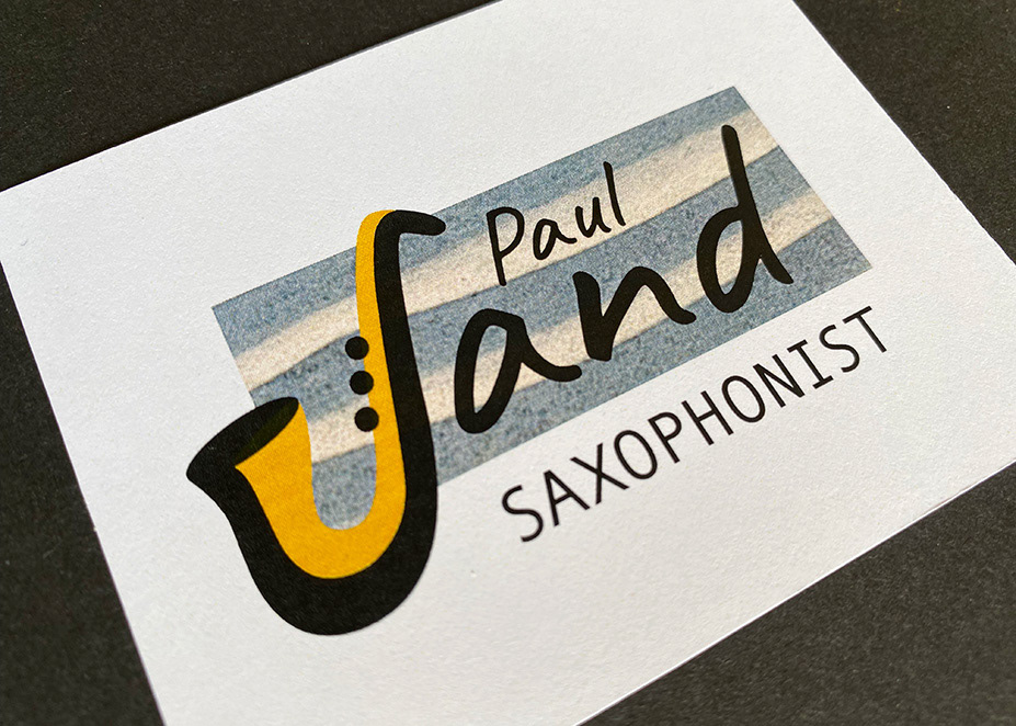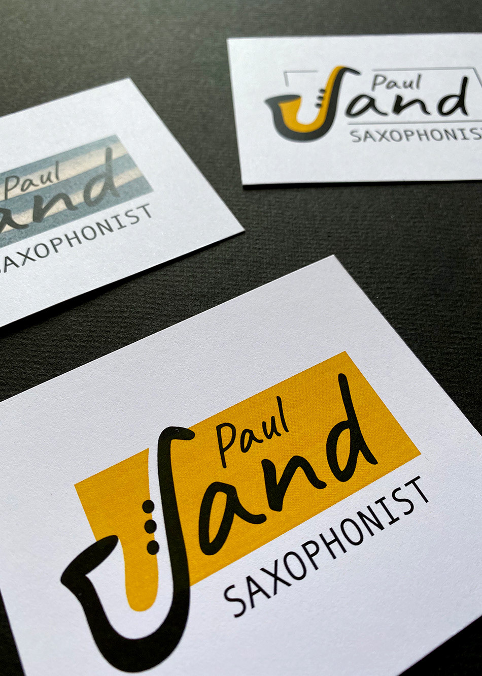 Wort-Bild-Marke für einen Saxophonisten in verschiedenen Varianten